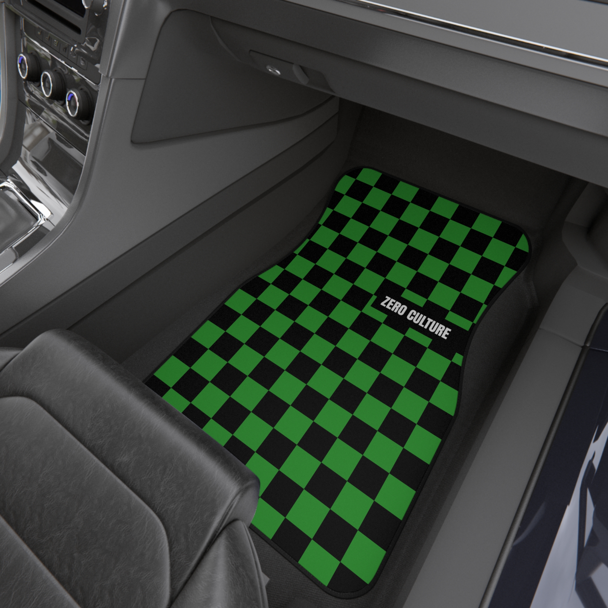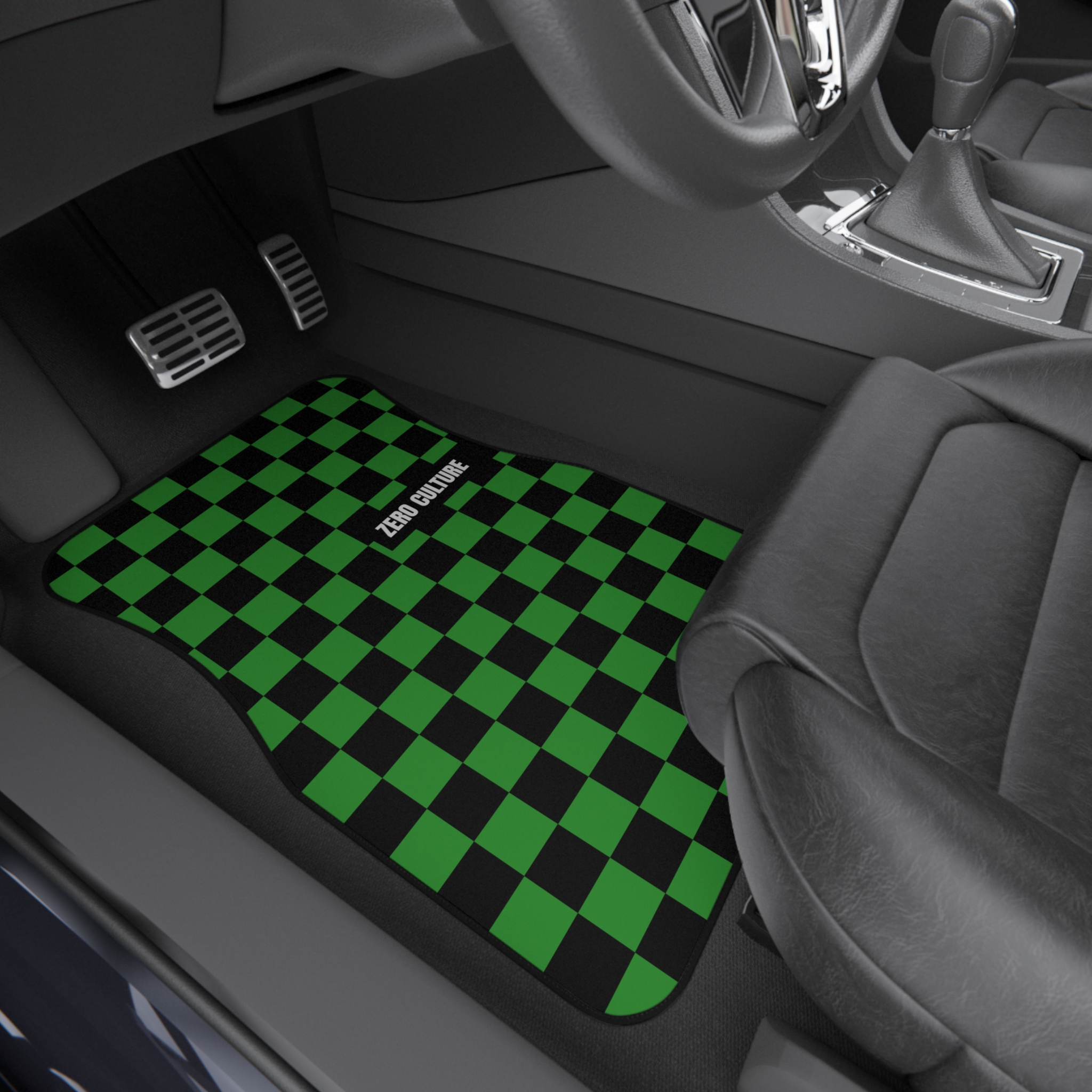 Elevate your car interior with our racing inspired black and green checkered car mats. These floor mats are more than just functional; they’re a stylish and bold addition to any vehicle. The eye-catching design from the high quality vibrant colors and the easy to clean and durable 100% Polyester car mat make this the perfect gift for yourself or someone you love.